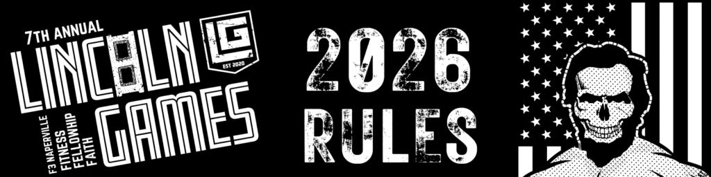 All rules and disputes for the Lincoln Games will be definitively decided by the Commissioners. The Commissioners for 2026 are Hootie (the F3 Naperville 1st Q) and Hank Hill (the Lizard Q).